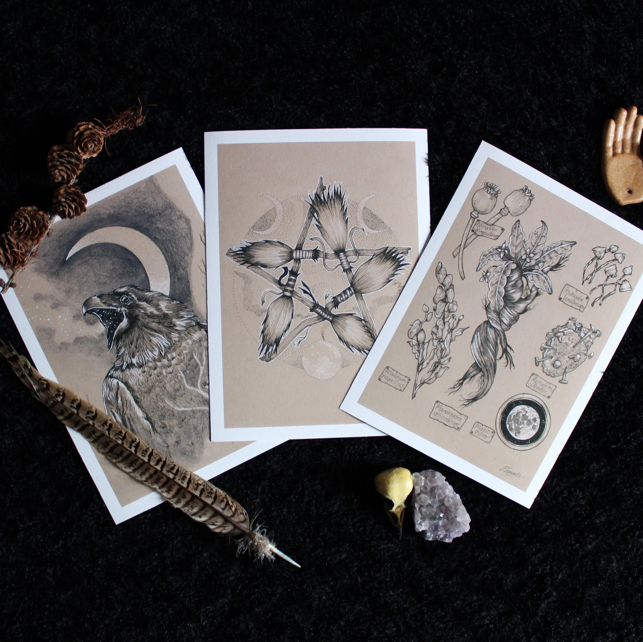 Laura Jeacock is a visual artist from Edinburgh, whose Artwork is inspired by the Moon, her magical practice and nature – each creation contains some fantastical, pagan or spiritual element. Nature is her Muse!